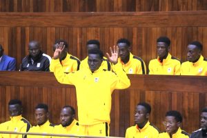 Uganda Cranes captain, 22-year-old Rogers Torach, acknowledging applause from MPs as the team followed proceedings from the Public Gallery